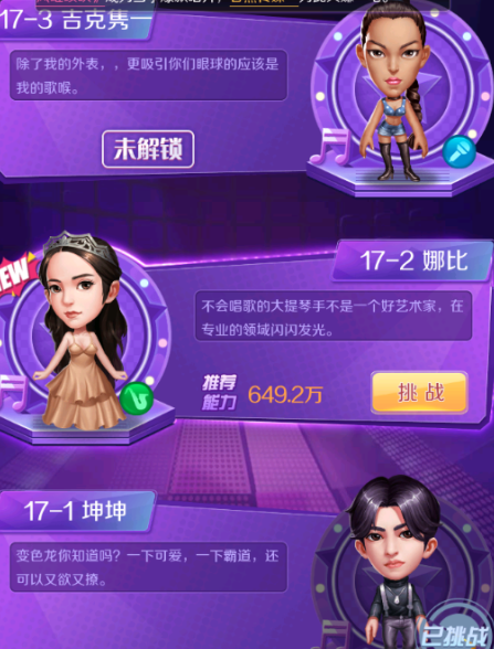 挑战对应名人,如果成功,就可以解锁这个艺人,解锁的这个艺人,后面在艺人攻略(后面会讲到艺人攻略的玩法)中可以选择,然后获得这个艺人的资料,艺人资料可以用于合成艺人或者艺人升星