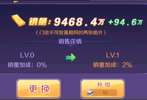 宣传的艺人,会根据艺人的品质还有要求的曲风,可以获得额外的增益(后面门店宣传玩法会详细讲到)