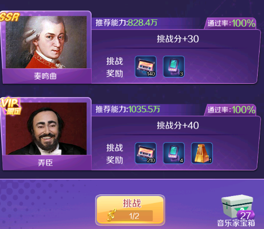 2.挑战成功还可以获取挑战分数,分数达到后,可以开启音乐家宝箱
