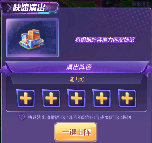 一般可以选择快速演出,系统会自动给我们匹配最优演出场馆,但是,这个玩法嘛,自己也可以去选择,不用拘泥在这