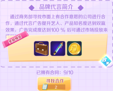 在商务部,进行品牌代言,就可以获取音乐币啦