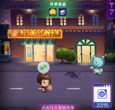 门店经营里面,可以进行门店宣传,就是派发传单,派发传单,可以获取音乐币