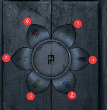 2. 按照下图顺序点击门上的花瓣即可打开门。