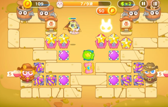 5.在两个终点站放置火箭,会有隐藏的飞兔,中间会被射出去,后面的火箭可以及时摧毁