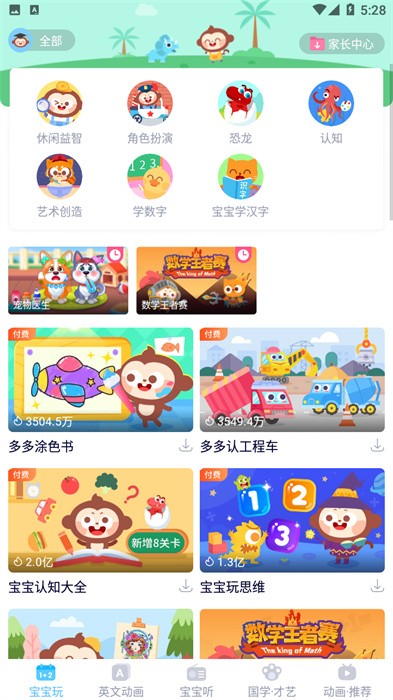 多多早教是一款专为幼儿设计的教育学习软件。通过寓教于乐的方式,陪伴宝宝度过快乐的成长时光。软件融合了丰富的早教内容和有趣的互动,如动画教学、角色扮演、简单的认知练习等,帮助孩子在轻松愉快的氛围中学习新知识。宝宝在观看可爱的动画的同时,可以自然地记住颜色、形状、数字、简单的常识等内容,潜移默化地提高他们的认知能力。