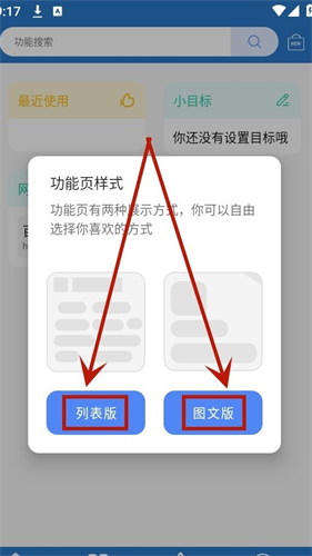 2、输入小而全工具箱app后,您可以根据自己的意愿选择功能页面的显示方式,点击即可。