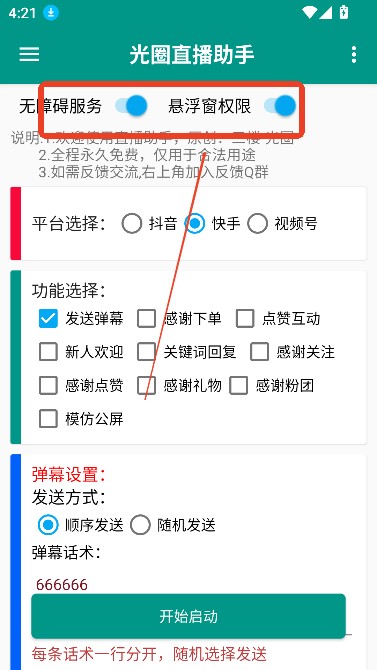 1.自动弹幕发送:实时发送预设弹幕,增强直播互动。