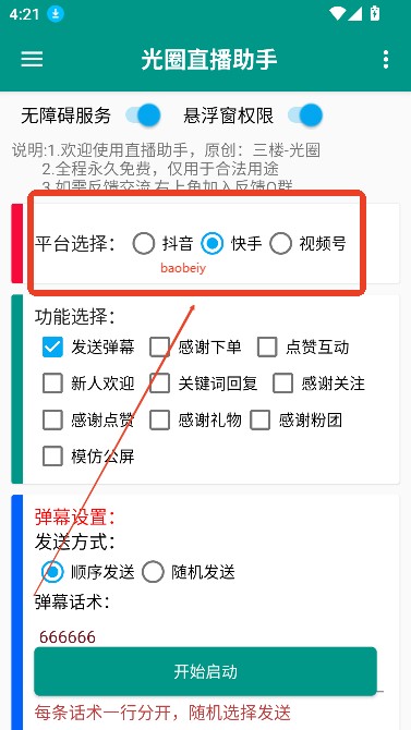 4、多平台兼容:支持抖音、快手、视频号等多个直播平台。
