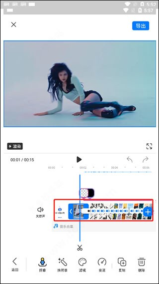 7、最后根据需要对视频进行处理,点击右上角“导出”按钮,将其保存到手机本地。