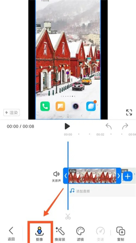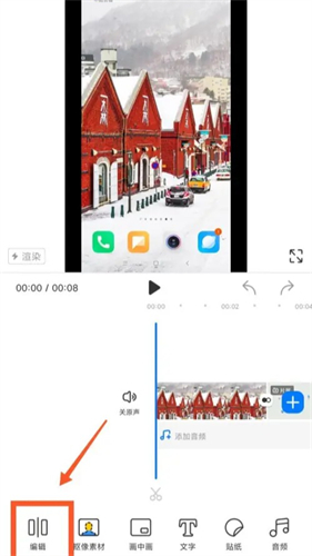 2.选择视频后加载,进入视频编辑功能界面。下面提供了编辑、抠图素材、画中画、文本等各种功能。